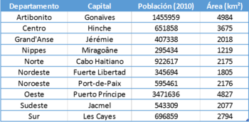 A continuación se adjunta una tabla con la población de Haití por regiones: