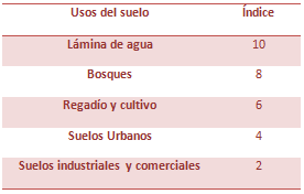 Para ello, se van a exponer los diferentes criterios escogidos para definir el índice seleccionado en cada capa medio-ambiental. En todos los aspectos se ha realizado una escala de 0 a 10, y dependiendo de la importancia de las afecciones se han asignado valores mayores o menores. Cuanto mayor es la afección y peor para el medio ambiente, mayor índice se ha asignado.