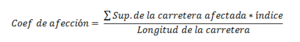 - Una vez realizada la asignación de un índice a cada tramo afectado, se ha sacado un coeficiente de afección de cada aspecto medio-ambiental en cada carretera calculado a través de la siguiente fórmula: