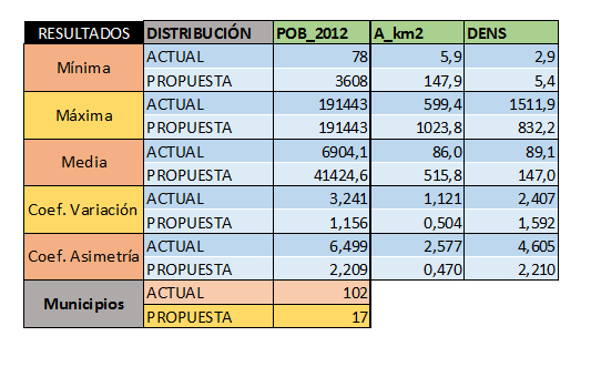 Resultados estadísticos de la unificación de municipios propuesta en la provincia de Almería.