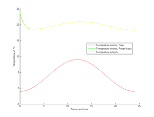 | actual | 23:49 6 mar 2015 | 841 × 641 (7 KB) | Isabel Roselló (Discusión | contribuciones) | Representación de la temperatura interior mediante los métodos de Euler y Runge-Kutta 4 con h=0.001 y la temperatura exterior. |