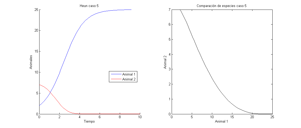 Comparativa de especies según el caso 5