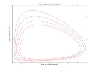 Este gráfico muestra la evolución de las presas tipo 1 frente los predadores
