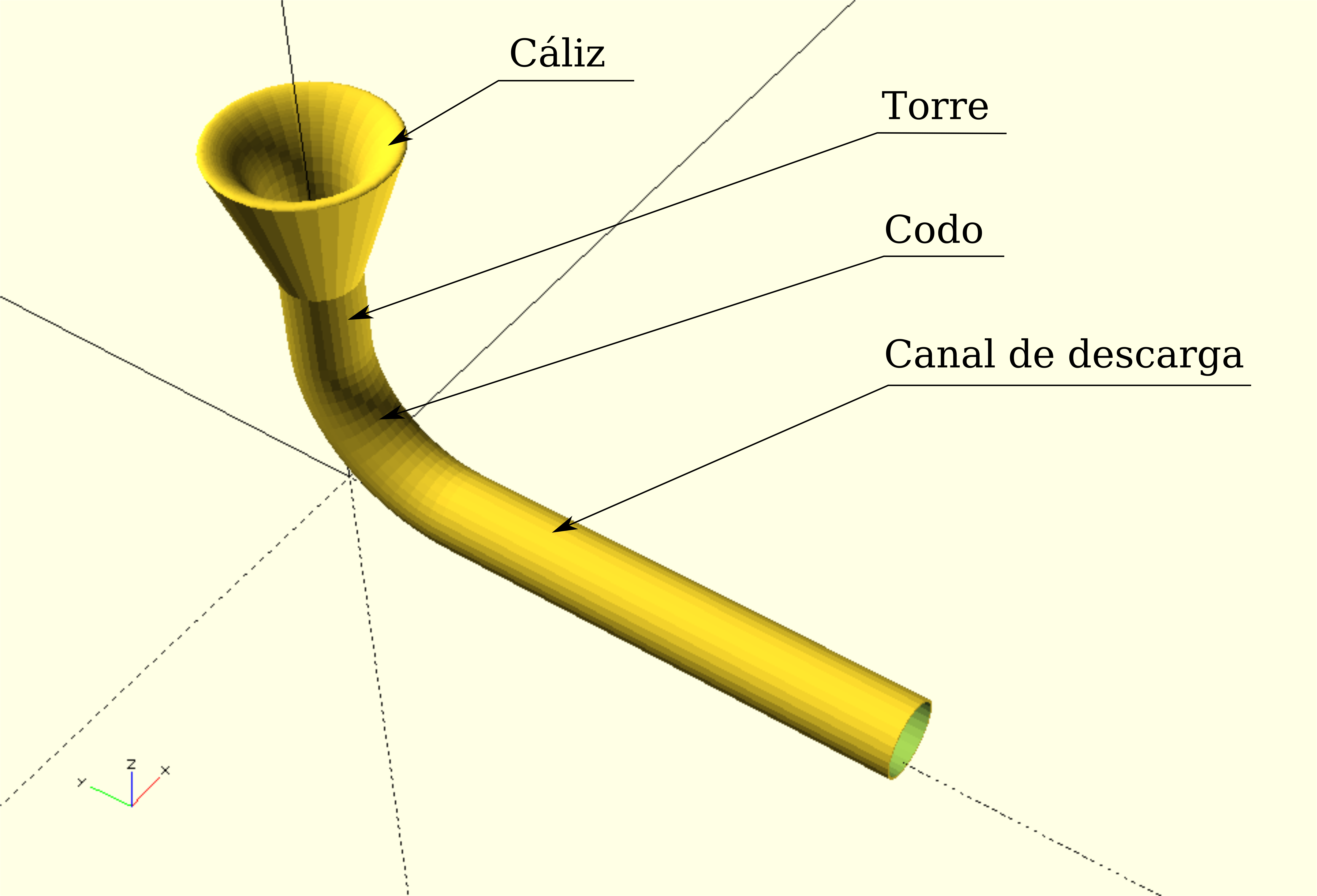 Perspectiva del conjunto de un aliviadero tipo Morning-Glory