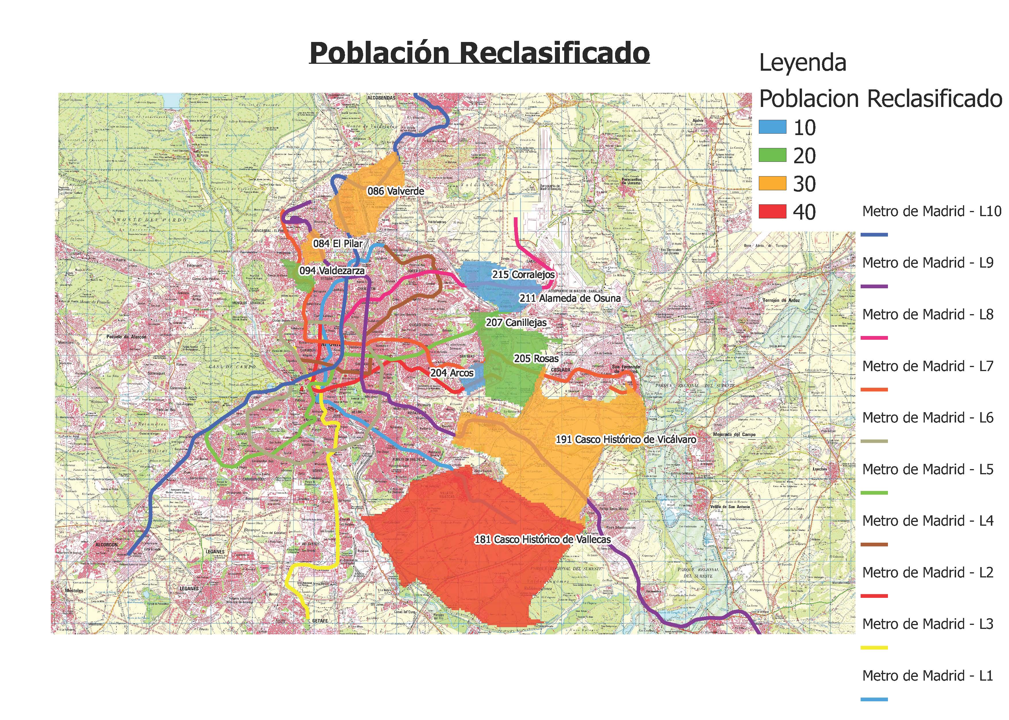 Mapa de puntos asignados a cada barrio según el número de personas en cada barrio.
