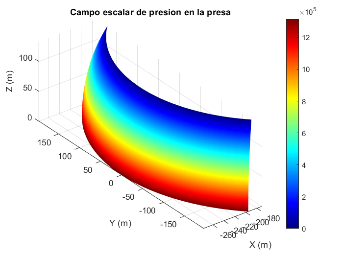 Distribución de la presión hidrostática en función de la altura en la presa de El Atazar (Comunidad de Madrid).