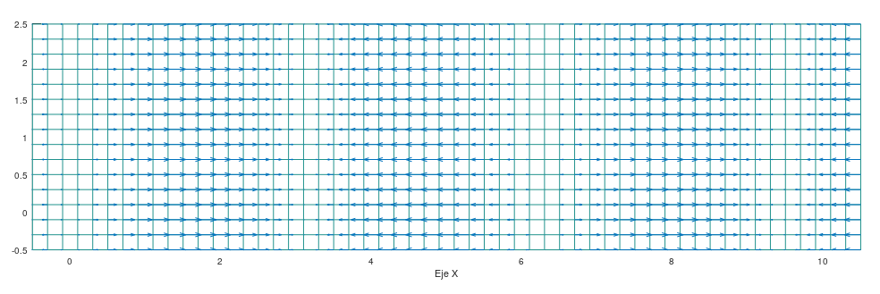 El campo de vectores del mallado puede representarse mediante el uso de Octave/Matlab.
