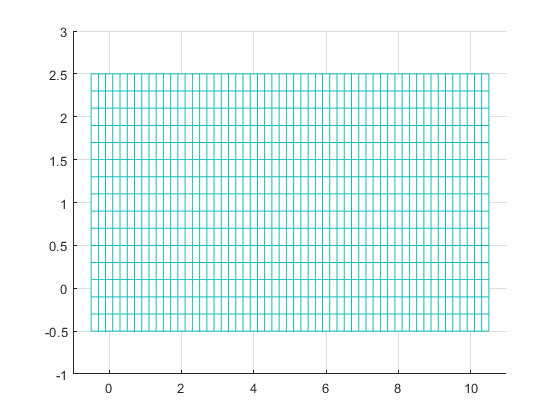 Para representar el campo de temperaturas de un sólido en MATLAB, primero ha de dibujarse un mallado que represente el objeto. Para ello se genera una malla de puntos mediante el comando meshgrid.
