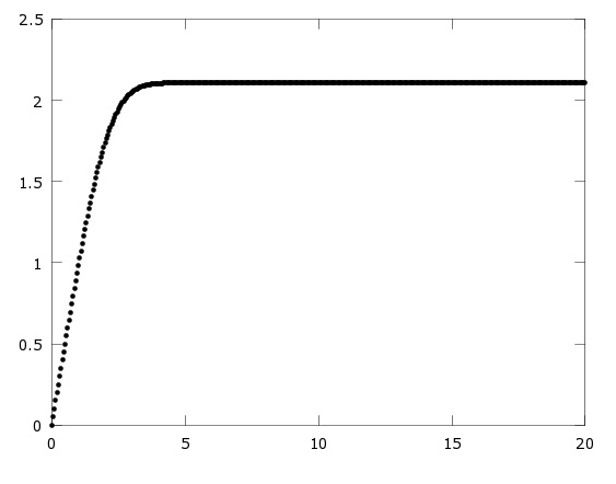 ylabel('y´(\eta)')Para encontrar el valor de [math]\eta_0[/math] por el cual [math]\ \vert f'(\eta)-1 \vert \lt 0,01[/math] , si [math]\eta\gt\eta _0[/math], es [math]\eta_0\ge4.5[/math] para [math] \eta \in \mbox{(0,20)}[/math].