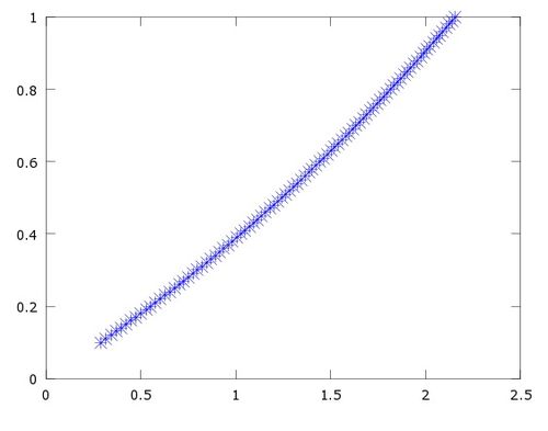 Supondemos la sección de una paca plana definida en [math] (0,x) [/math], con [math]x\gt0[/math] e [math]y\gt0[/math] La complejidad del ejercicio viene debido a resolver numéricamente esta función, llamada Ecuación de Blasius, donde tomaremos como valores iniciales: [math]f(0)=f(0)'=0; f(0)''=k[/math], [math] f'\rightarrow 1[/math] cuando [math]\eta\rightarrow \infty[/math] , [math] u_0 = 2 [/math], la viscosidad [math] \nu [/math] toma valor 1. Donde la [math]k=0.1,0.11,0.12,…1[/math]