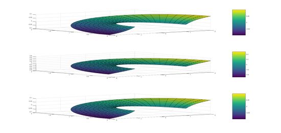 La siguiente gráfica representa las tensiones superficiales a la placa. Como se ve en el resultado, estas incrementan cuando θ tiende a π/2.