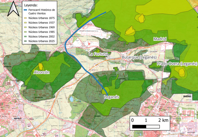RESUMEN DE LA EVOLUCIÓN DE LOS NÚCLEOS URBANOS DE LA ZONA CERCANA AL TRAZADO DEL FERROCARRIL HISTÓRICO DE CUATRO VIENTOS