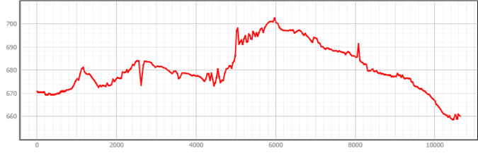 Perfil longitudinal del Carril bici propuesto: En ocasiones, se puede observar divergencias en el terreno muy exageradas, ya sea tramos muy cortos con una pendiente elevada tanto ascendente como descendente. Esto es debido al paso del carril por encima, por debajo o al lado del terraplén de una carretera importante. Cabe destacar, que cuando circulen las bicicletas, esas pendientes elevadas prácticamente no se notarán con respecto al resto de la senda ciclable.