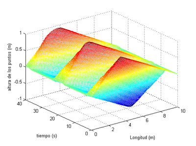 xlabel('Longitud (m)'); ylabel('tiempo (s)'); zlabel('altura de los puntos (m)');