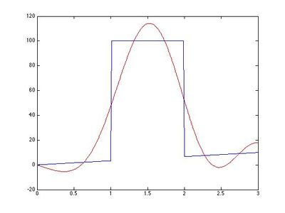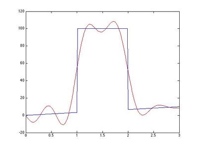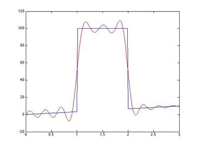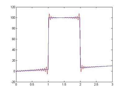 Q representa el número de elementos de la serie de Fourier, cuya aproximación es mayor cuanto mayor sea, esto puede apreciarse en las siguientes gráficas con Q= 1,3,5,10 y 20. Hemos añadido una gráfica para Q=100 en la que se observa con mayor claridad.