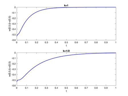 [math] \begin{cases} u_{1t}-\frac{1}{2}u_{1xx}=0 & x\in(0,1),t\gt0\\ u_1(0,t)=0&t\gt0\\ u_1(1,t)=1&t\gt0\\ u_1(x,0)=0&x\in(0,1) \end{cases} [/math]