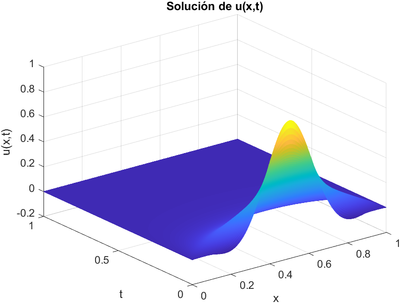 % Representamos gráficamente la solución de la EDP: