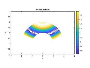 Las curvas de nivel o equipotenciales son líneas que unen los puntos de igual magnitud física, tal queNos muestran de una forma muy visual la variación de la función temperatura. Es posible representar estas curvas en MATLAB mediante el comando "contour".