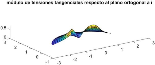 title('módulo de tensiones tangenciales respecto al plano ortogonal a i');