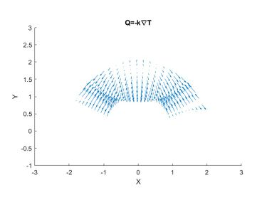Según la Ley de Fourier, la energía calorífica [math]\vec{Q}[/math] viaja de acuerdo a la fórmula [math]\vec{Q} = −\kappa\nabla T[/math], donde [math]\kappa[/math] es la constante de conductividad térmica de la placa que supondremos κ = 1.