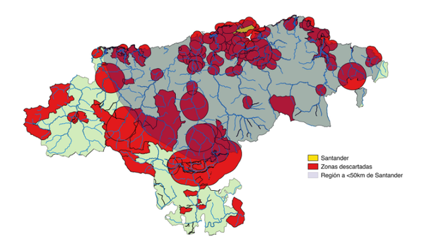 Partiremos de cuencas próximas (en torno a un radio aproximado de 50 km desde Santander) y valoraremos las condiciones anteriormente descritas, dotándolas de una calificación ponderando los distintos campos de estudio. Recurriremos a mapas geológicos, topográficos, de viales, datos de precipitaciones, Red Natura 2000 y espacios protegidos. De esta forma esperamos obtener una cerrada claramente superior a la demás en la que se podría realizar un embalse para Santander.