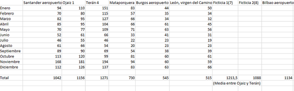 -Estaciones meteorológicas de Ojaiz, Mataporquera, Santander aeropuerto y Terán. Información extraída de la web www.meteocantabria.es -Estaciones meteorológicas en Castilla y León: Burgos aeropuerto y León (Virgen del Camino). Información extraída de www.aemet.es -Estación meteorológica de País Vasco: Bilbao aeropuerto. Información extraída de www.aemet.es