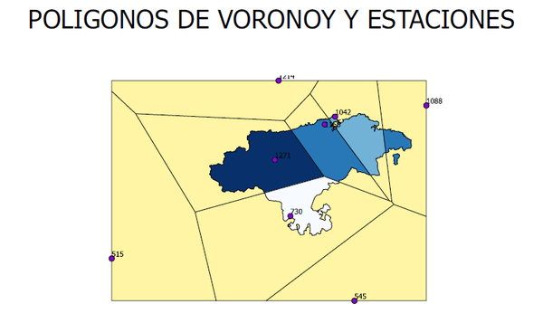 -Polígono de Voronoy partiendo de los datos de las estaciones pluviométricas.