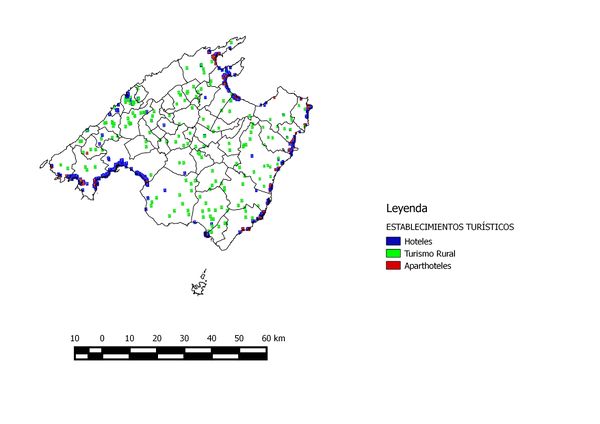 Para ello hemos digitalizado las zonas con mayor densidad hotelera de la isla desde una capa de tipo WMS de la base de datos del IDEE (Infraestructura de Datos Espaciales de España).