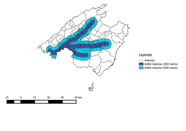 - Para las autovías se han realizado dos búferes: