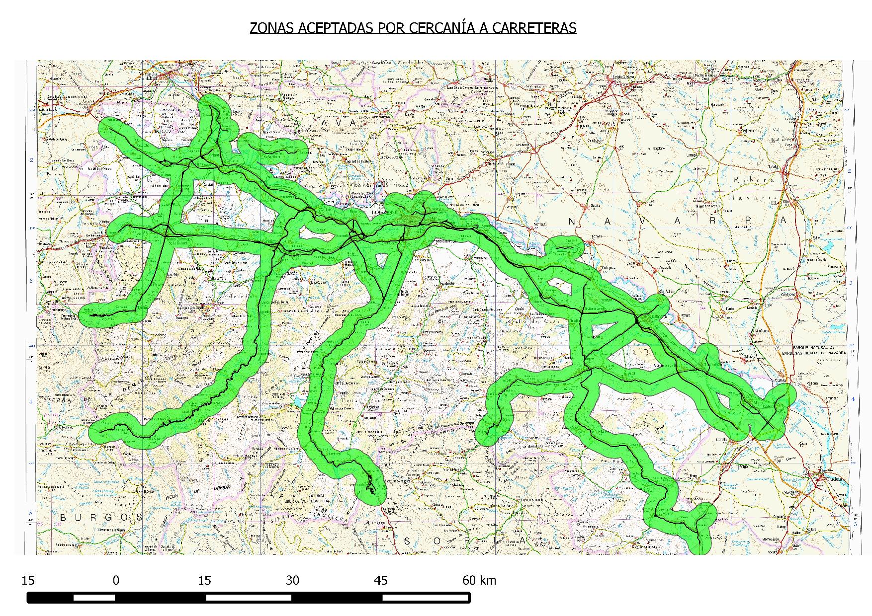 Como conclusión estableceremos en un primer momento las zonas aceptadas, que serán la intersección de los bufferes de las distintas variables positivas descritas anteriormente, y las zonas excluyentes, las cuales serán la unión de los distintos bufferes de las variables negativas también descritas en el apartado anterior.