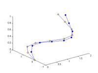 plot3(P(1,:),P(2,:),P(3,:),'o-','MarkerFaceColor','b')