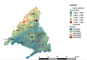 El factor de ruta será el indicador que nos cuantifique la accesibilidad entre los pueblos a estudiar en el proyecto.