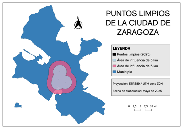 Zaragoza presenta los índices más bajos de toda la muestra, con solo 4,72% de cobertura en reciclaje y 14,76% en puntos limpios. Esta situación responde, en parte, al hecho de que Zaragoza posee la mayor superficie municipal de todas las ciudades analizadas (casi 974 [math] km^{2} [/math]). Su término municipal incluye amplias zonas de campo, desierto (como los Monegros) y áreas industriales con baja ocupación residencial. La dispersión geográfica y la menor presión urbana podrían haber llevado a una menor inversión en infraestructuras distribuidas, aunque los niveles actuales indican necesidad urgente de expansión para atender adecuadamente incluso a la población urbana.