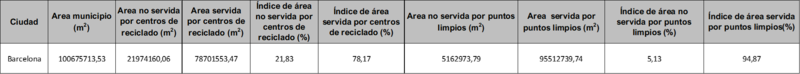 Valencia muestra un desempeño muy limitado en cobertura de centros de reciclado (18,13%), aunque mejora notablemente en lo que respecta a puntos limpios, con una cobertura del 50,42%. Este desbalance refleja una red de reciclaje insuficiente frente a una planificación algo más avanzada en lo referente a puntos limpios. El término municipal de Valencia, si bien no es tan extenso como el de Madrid o Zaragoza, presenta una mezcla de áreas densamente urbanizadas y otras más industriales o agrícolas, especialmente en la zona de huerta. Además, la presencia de infraestructuras como el puerto y el aeropuerto, así como grandes parques urbanos y naturales (como el de la Albufera), ocupan superficie sin cobertura de servicios ambientales, reduciendo el índice efectivo de servicio en zonas habitadas.