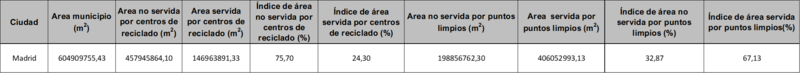 A continuación, se muestran los datos e índices correspondientes a los puntos limpios y a los centros de reciclado de la ciudad, así como la representación geoespacial de los resultados.