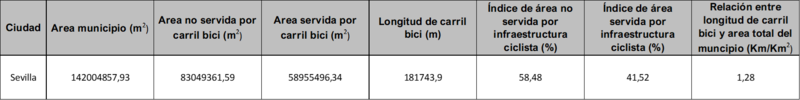 A continuación, se muestran los datos e índices correspondientes al carril bici de la ciudad, así como la representación geoespacial de los resultados.