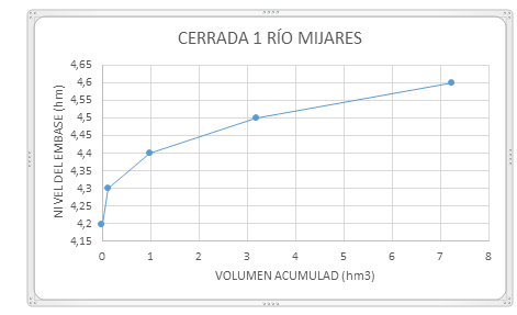 El objeto de este apartado es realizar una simulación de los embalses que generaría la cerrada propuesta a las diferentes cotas admisibles.