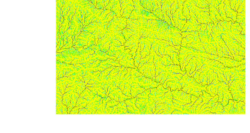 • Mediante la herramienta de GRASS r.watershed con un tamaño mínimo de 20000 celdas se obtienen las subcuencas, los ríos, las direcciones de drenaje y los segmentos de corriente. Para calcular el área de la cuenca se convierte la capa ráster a una capa vectorial y posteriormente se ha exportado esta capa vectorial desde GRASS. Así esposible calcular dicho área en la tabla de atributos.