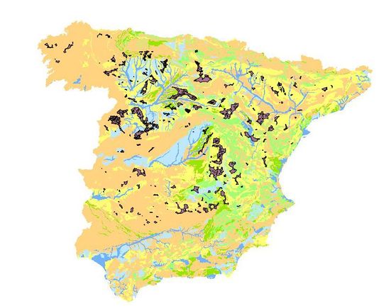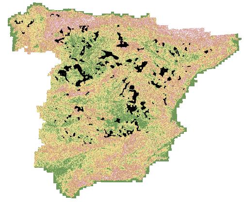 Tras la creación de una capa vectorial de todo el territorio peninsular español, se realizarán las restas pertinentes para eliminar las zonas que deben ser evitadas según los criterios de exclusión. Una vez realizado este proceso, esperamos haber eliminado la mayor parte del territorio inicial.