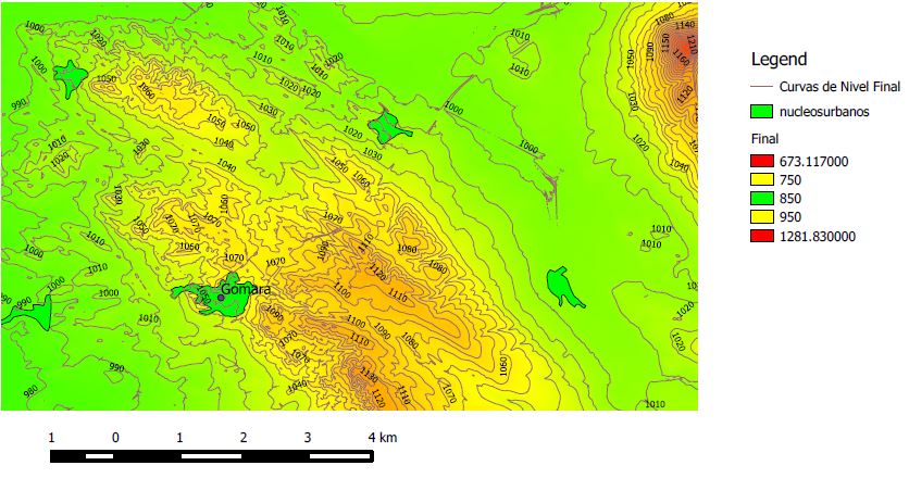 Recurriendo al CNIG podemos obtener la altitud de la zona de estudio y dividirla en regiones según la cercanía a los parámetros óptimos para el desarrollo de la trufa.