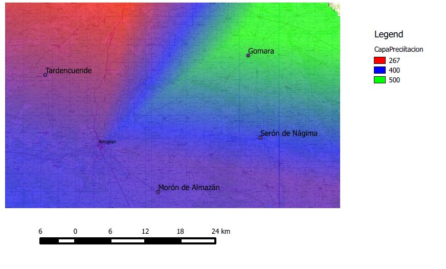 Para obtener las precipitaciones de la zona recurrimos a los datos pluviometricos de la AEMET y con los datos de las estaciones circundantes hemos generado un mapa que representa gráficamente las precipitaciones medias de la zona.