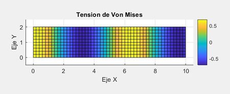 La tension de Von Mises es una magnitud escalar que sirve como indicadora del tipo de comportamiento de un material, si es completamente elástico o si tiene un comportamiento plástico. Se calcula aplicando la siguiente formula que utiliza los autovalores de la matriz del tensor de tensores.