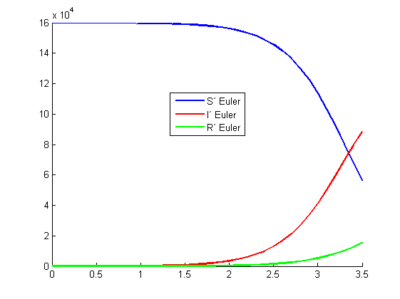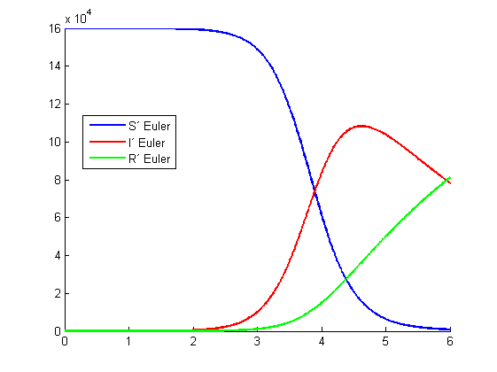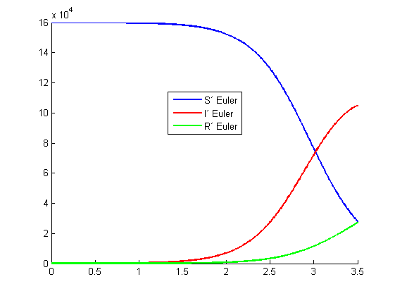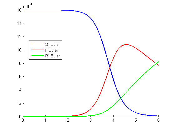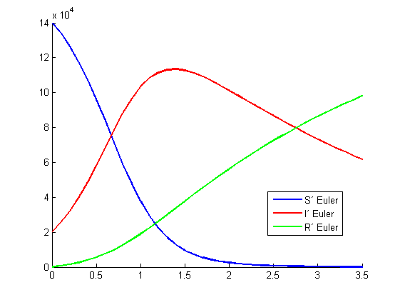 legend('S´ Euler','I´ Euler','R´ Euler','Location','best')