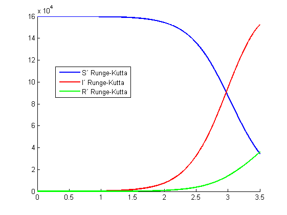 legend('S´ Runge-Kutta','I´ Runge-Kutta','R´ Runge-Kutta','Location','best')