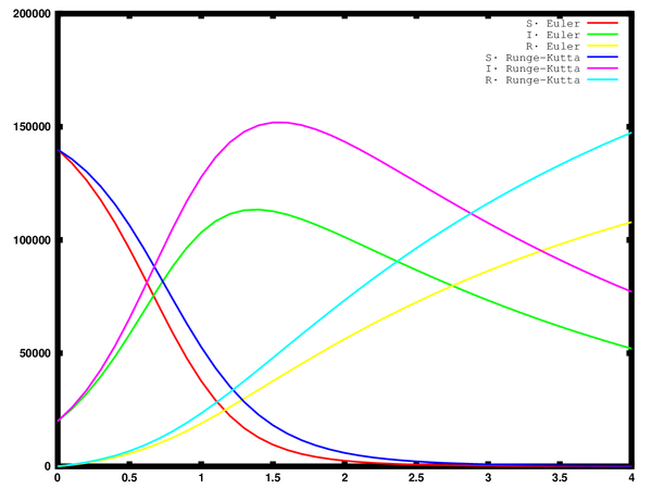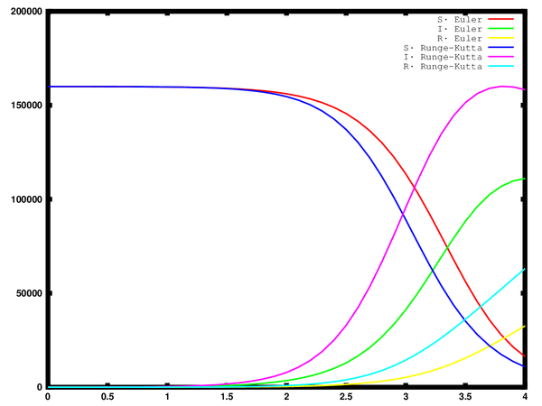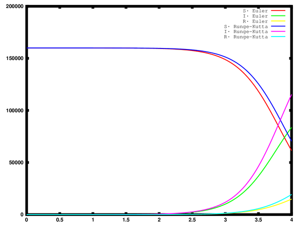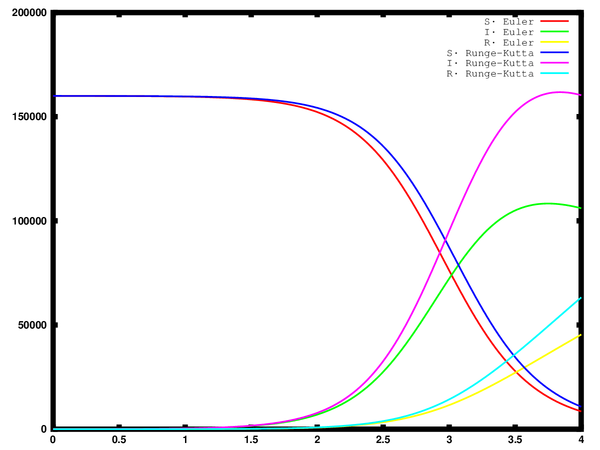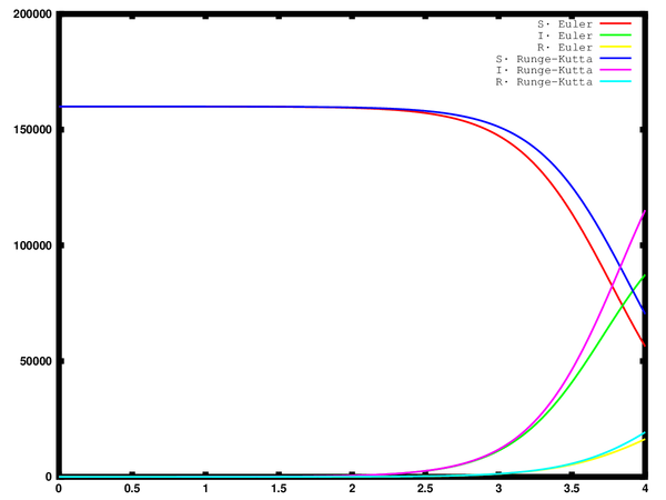 t0 = 0; tN = 4; S0 = 159985; I0 = 15; r = 0.0000218; a = 0.341; h = 0.1;