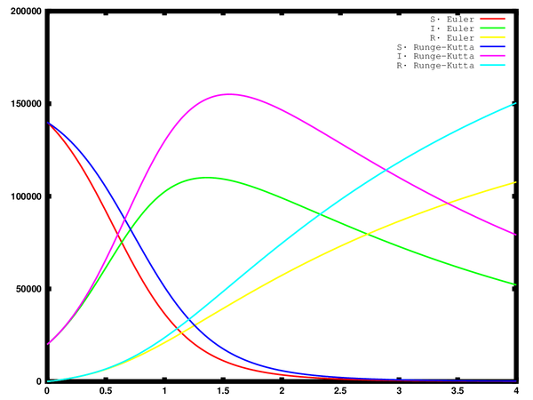 legend('S´ Euler','I´ Euler','R´ Euler','S´ Runge-Kutta','I´ Runge-Kutta','R´ Runge-Kutta','Location','best')