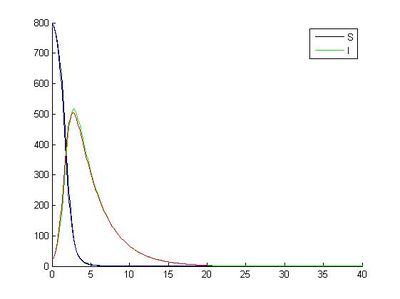 [math] \left\{\begin{matrix} \frac{dS}{dt}=-aSI\\ \frac{dI}{dt}=aSI-bI-cI \end{matrix}\right. [/math]