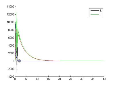 t0=0; tN=20; S0=1600; I0=40; h=0.1; %a=0.003;