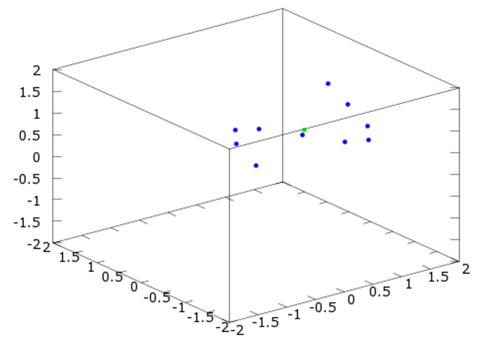 En la siguiente figura se observa el sistema de partículas, cuyos ejes están fijados en la región [-2,2]x[-2,2]x[-2,2].