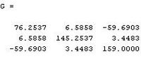 G=[76.2537 6.5858 -59.6903;6.5858 145.2537 3.4483;-59.6903 3.4483 159.0000];